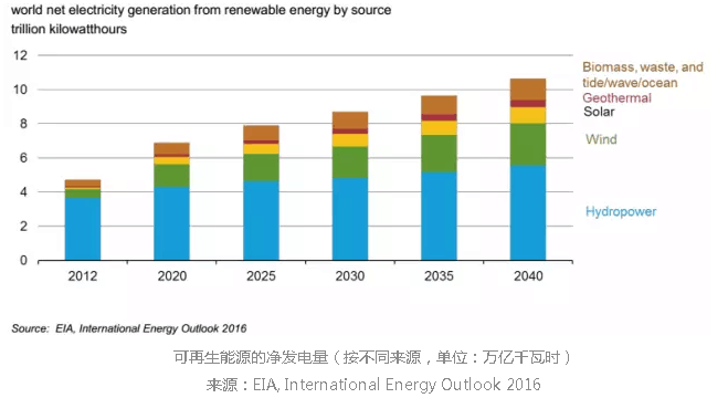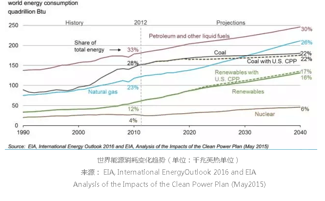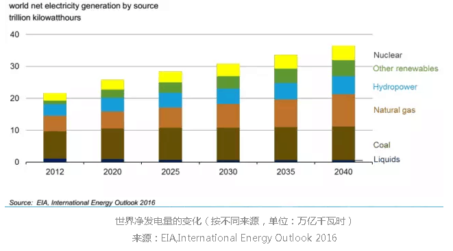 在2012年,世界凈發(fā)電量的40%來(lái)自煤炭。到2040年,煤炭、天然氣和可再生能源的能源供應(yīng)差不多達(dá)到平衡,均占28-29%的世界發(fā)電份額。