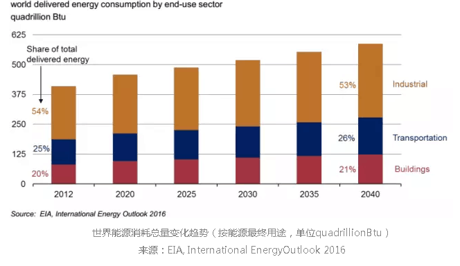 工業(yè)界仍然是能源消耗的主體,在2040年,工業(yè)界將消耗超過(guò)一半的全球能源產(chǎn)出。
