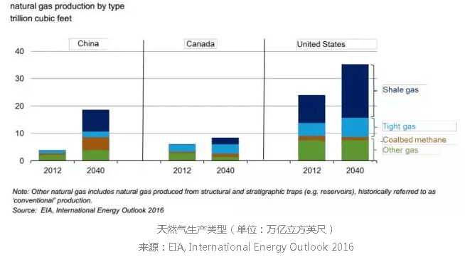 3.頁(yè)巖氣、致密氣和煤層氣對(duì)天然氣的供應(yīng)的重要性在增加,尤其是美國(guó)、中國(guó)和加拿大。