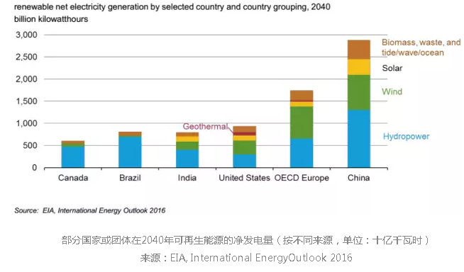 4.從地理上看,到2040年,可再生能源的規(guī)模和結(jié)構(gòu)差異甚大。
