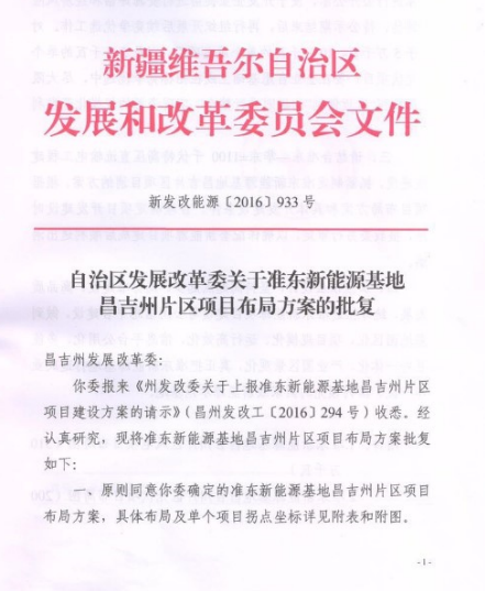 附件:自治區(qū)發(fā)展改革委關(guān)于準(zhǔn)東新能源基地昌吉州片區(qū)項(xiàng)目布局方案的批復(fù)