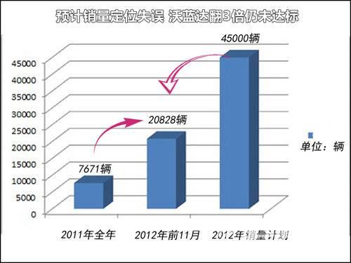 據(jù)通用官方統(tǒng)計,美國2012年沃藍達的銷量預計將達23000輛,這個數(shù)字達到了2011年的3倍。然而這與當初制定的銷量計劃(45000輛的銷量目標)相比,僅為當初的一半之多,預計銷量定位嚴重失誤。
