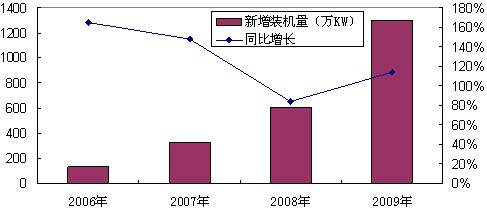 表 2006-2009年我國(guó)新增風(fēng)電裝機(jī)容量