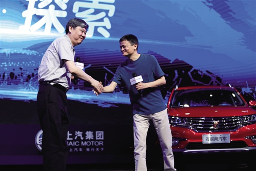 7月6日,首款互聯(lián)網(wǎng)汽車榮威RX5的上市。上汽集團董事長陳虹和阿里巴巴集團董事局主席馬云親自率領(lǐng)各自的高管團隊輪番登臺。這也是上汽和阿里的高管團隊,首次聯(lián)合亮相。