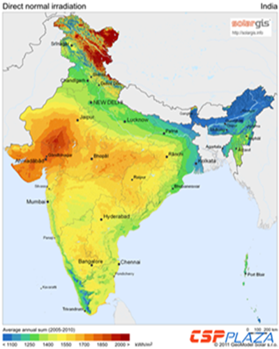 作為目前全球太陽能投資項目最主要的市場之一,印度有著豐富的光照資源。在世界前20位經(jīng)濟(jì)體中,印度的平均日照量排第一,尤其是拉賈斯坦邦有廣袤的沙漠地帶,常年日照充足,非常適合修建光伏發(fā)電網(wǎng)絡(luò),缺少的只是電力生產(chǎn)與輸送的基建與資金。