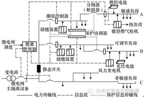 微網(wǎng)將分布式發(fā)電裝置、負(fù)荷、儲(chǔ)能以及控制裝置有機(jī)結(jié)合接入中低壓配電系統(tǒng)中。既可與電網(wǎng)聯(lián)網(wǎng)運(yùn)行,也可在電網(wǎng)故障或需要時(shí)與主網(wǎng)斷開單獨(dú)運(yùn)行,是分布式可再生能源有效利用的重要形式。