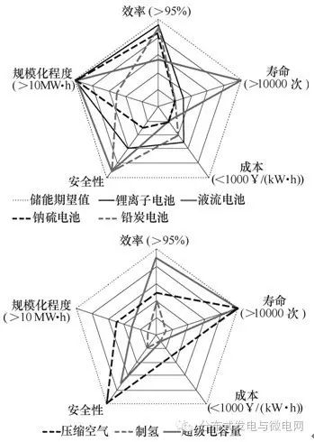 從對(duì)比效果來看,各種儲(chǔ)能技術(shù)互有短板,距期望值有一定差距,其中鋰電池與應(yīng)用指標(biāo)差距最大的是壽命和成本,液流電池與應(yīng)用指標(biāo)差距最大的是效率和成本。