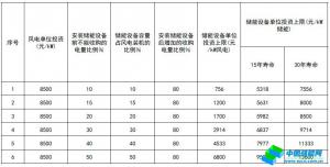 備的容量為風電裝機容量的10%,折算到儲能設(shè)備的允許單位投資上限為