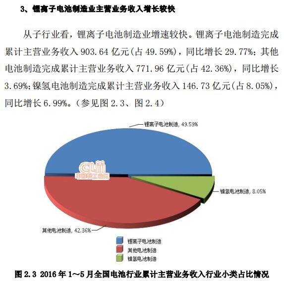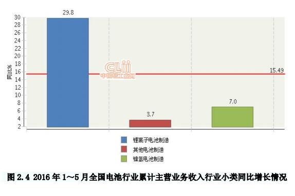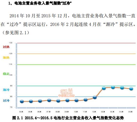 中國儲(chǔ)能網(wǎng)訊:2014年10月至2015年12月,電池主營業(yè)務(wù)收入景氣指數(shù)一直在“過冷”提示區(qū)運(yùn)行,2016年2月起連續(xù)4月在“漸冷”提示區(qū)。從子行業(yè)看,鋰離子電池制造業(yè)增速較快。鋰離子電池制造完成累計(jì)主營業(yè)務(wù)收入903.64億元,同比增長29.77%;其他電池制造完成累計(jì)主營業(yè)務(wù)收入771.96億元,同比增長3.69%。