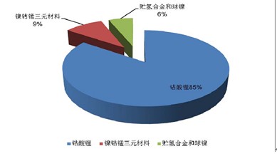 據(jù)相關數(shù)據(jù)統(tǒng)計顯示,我國電池行業(yè)用鈷量還是集中在鈷酸鋰方面,占總消費量的84.91%,三元材料占9.2%,儲氫合金和球鎳占5.89%。