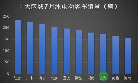 十大主流區(qū)域7月純電動客車銷量均上百 江蘇最高