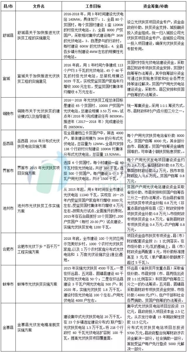 安徽省各市縣光伏扶貧政策