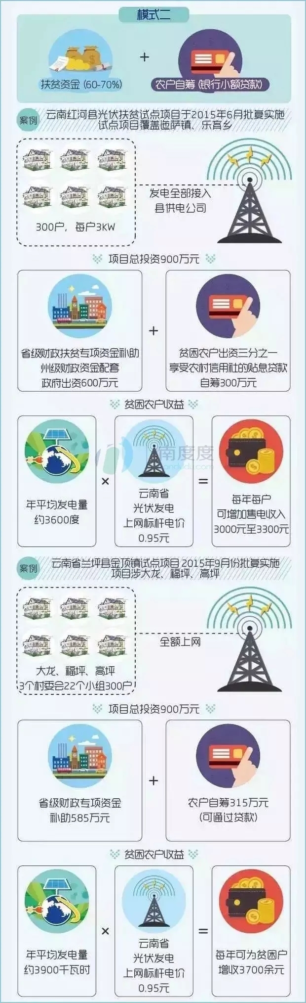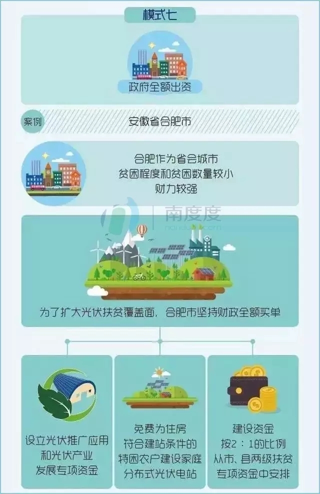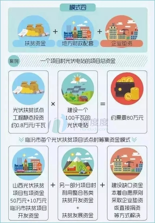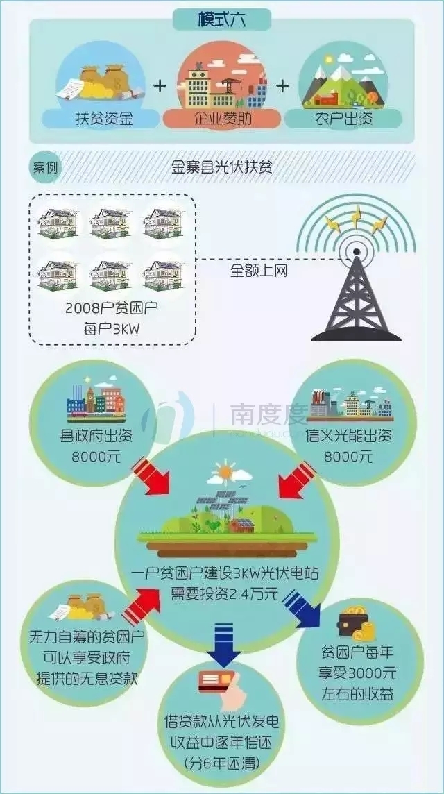 光伏扶貧中最大的問(wèn)題是初始建設(shè)投入都較大,好的扶貧模式可以有效解決貧困戶的初始投入,后期貧困戶可以利用光伏電站收益獲得穩(wěn)定收入。結(jié)合不同地區(qū)、不同條件,許多扶貧模式大同小異,這里歸納了幾種較為成功的扶貧模式和相關(guān)案例: