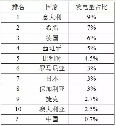三、世界光伏發(fā)電占比前十名(數(shù)據(jù)截止2015年底)