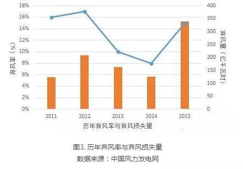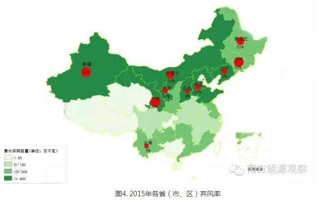 以甘肅為例,2011年和2012年棄風(fēng)率高達(dá)11.7%和24%,但是到2015年裝機(jī)容量比2012年又翻了一番,單個(gè)省份風(fēng)電裝機(jī)容量占全國總裝量近10%,風(fēng)電發(fā)展區(qū)域不均衡進(jìn)一步加劇。