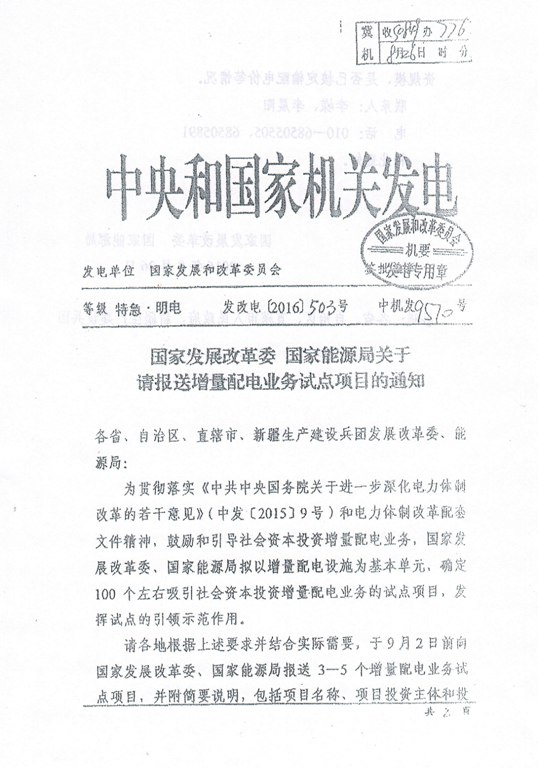 要求各地于9月2日前報(bào)送3-5個(gè)增量配電業(yè)務(wù)試點(diǎn)項(xiàng)目,并附簡(jiǎn)要說明。