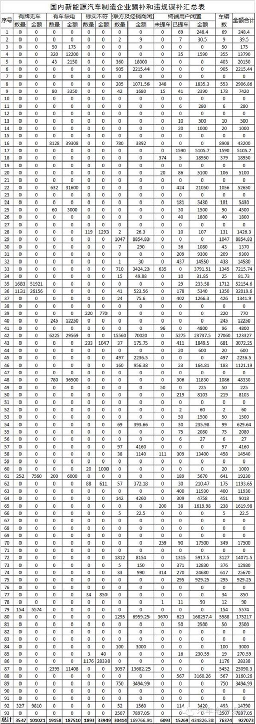 而在9月8日下午和晚間,一份未經(jīng)證實的“騙補名單”中,更多主流車企名列其中,它們被曝光都有不同程度的騙補和違規(guī)套取補貼行為——少到30多萬,多到5個億,93家被調(diào)查企業(yè)中僅21家沒有騙補和違規(guī)套取補貼行為。這種規(guī)模的騙補一旦被官方證實,顯然超出了任何一位專家或行業(yè)人士的設(shè)想。