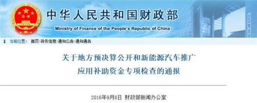 2016年1月21,工信部發(fā)文要求各省自查,工業(yè)和信息化部發(fā)文《關(guān)于開展新能源汽車推廣應(yīng)用核查工作的通知》要求媒體報道存在“騙補”嫌疑的江蘇、浙江、上海、安徽四省市進(jìn)行自查,并會同國家發(fā)展改革委、科技部、財政部赴江蘇專門核查。與此同時,四部委也并未放松對全國其他區(qū)域的調(diào)查。按照上述通知,面向全國范圍的核查采取有關(guān)省份自我核查和選擇部分省份現(xiàn)場督查兩種方式。自我核查要求有關(guān)?。▍^(qū)、市)對本地區(qū)財政補貼資金使用及管理情況、企業(yè)新能源汽車生產(chǎn)情況、新能源汽車用戶使用情況進(jìn)行核查并形成自查報告,于2月5日前提交至四部委。