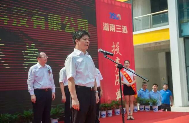 10:38,慶典儀式正式開始。由市委副書記何文君主持,三迅董事長周文對發(fā)表了致辭。