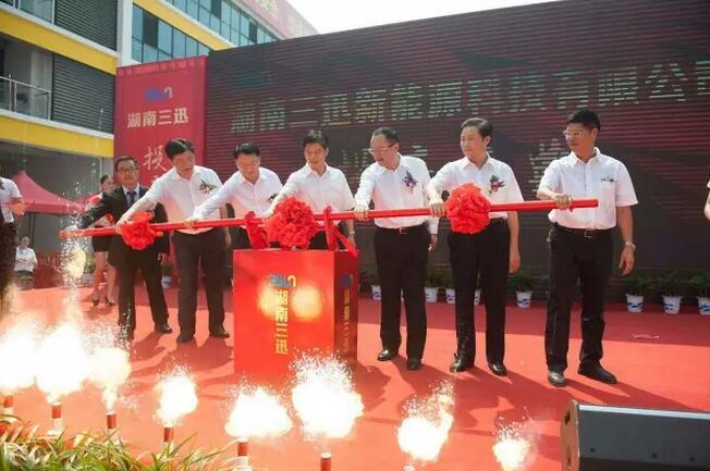 8:18,湖南三迅新能源科技有限公司董事長周文對、婁底市創(chuàng)業(yè)投資有限責任公司總經理肖志華、中國人民大學副教授梁雨谷、深圳三訊電子有限公司總經理陳新安、湖南三迅總經理魏義君、副總經理梁世碩共同為湖南三迅揭牌。