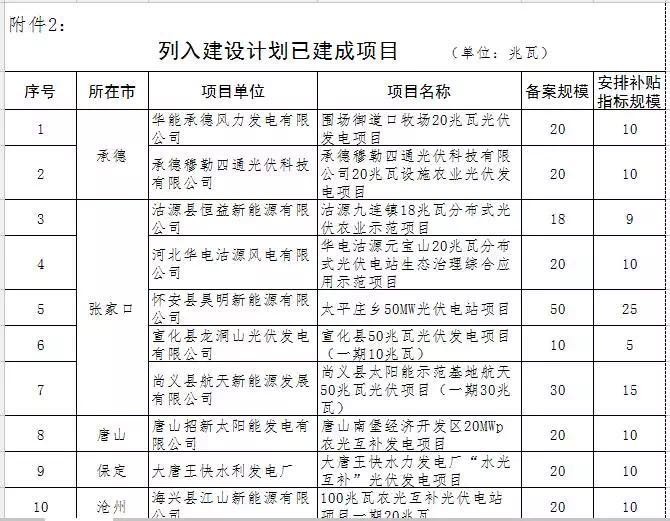 本次計(jì)劃安排所有項(xiàng)目均為省已備案且已建成具備并網(wǎng)條件的項(xiàng)目;