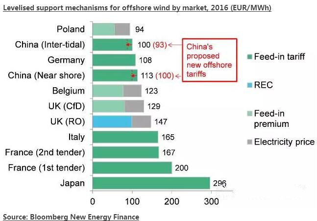 中國儲能網(wǎng)訊:9月29日,國家發(fā)改委出臺《關(guān)于調(diào)整新能源標(biāo)桿上網(wǎng)電價的通知(征求意見稿)》,擬下調(diào)風(fēng)電、光伏補貼力度,并且不再將生物質(zhì)發(fā)電納入可再生能源基金補貼范圍,轉(zhuǎn)而由各省定價并支付補貼。其中,變化最大的是光伏電價,電站標(biāo)桿電價降幅在23.5-31.2%之間,分布式度電補貼降幅在28.6-52.4之間。除此之外,2018年陸上風(fēng)電電價比原計劃再降0.03元/kWh, 海上風(fēng)電電價也將下調(diào)0.05元/kWh,即近海項目電價下調(diào)5.9%,潮間帶項目下調(diào)6.7%。新政執(zhí)行時間為2017年1月1日。