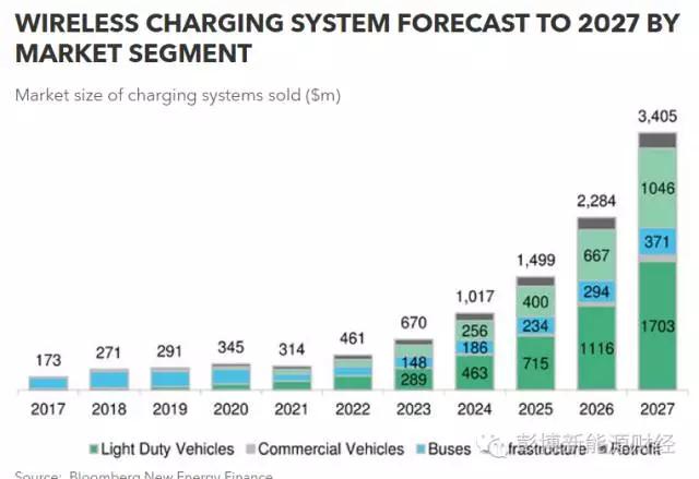如果WEVC系統(tǒng)真的可以應(yīng)用到2017年出廠的豪華車型上,彭博社預(yù)計這種技術(shù)將在2030年前完成技術(shù)的普及,開始服務(wù)于中低檔車型。另外,由于電動大巴可以借助無線充電系統(tǒng)平衡大功率充電器的成本壓力,彭博社預(yù)測電動大巴無線充電系統(tǒng)將在WEVC市場的最初發(fā)展階段扮演重要角色。