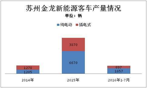 蘇州金龍去年年共生產了10540輛新能源客車。其中純電動客車產量6670輛,插電式客車產量為3870輛,總量在全行業(yè)排名第二,其中僅純電動車客車的銷售額就達到80多億元。