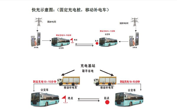 對此,創(chuàng)新聯(lián)盟推行“固移并舉”方針:采用快充技術,應用固定大功率充電樁;在無法建樁的情況下應用移動補電車充電。目前我國運營中的新能源公交車主要有7種,其中的中等續(xù)駛里程淺充淺放公交車恰好就靈活運用到了這個模式。移動補電車十分便捷,可以作為分布式儲能電源或應急電源,隨時隨地為電動汽車應急充電。