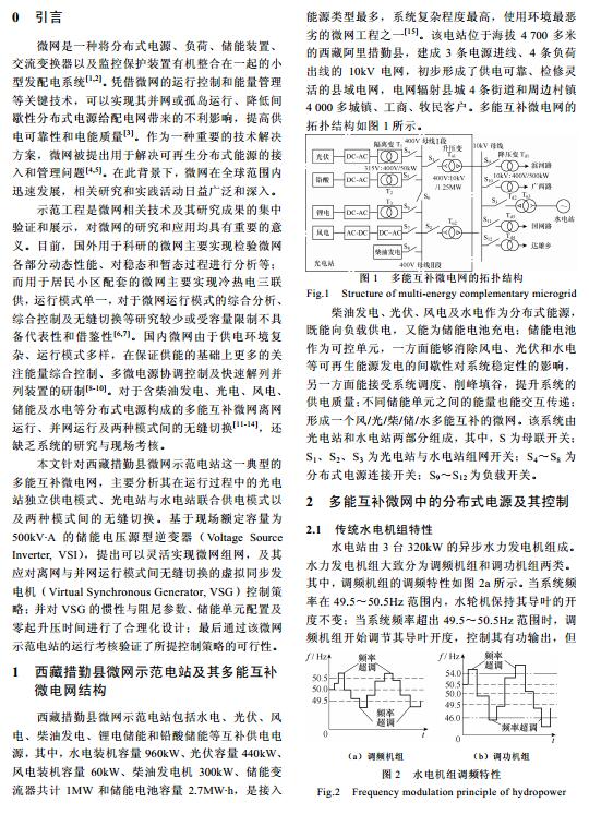 關(guān)鍵詞:多能互補微電網(wǎng), 虛擬同步發(fā)電機, 光電站, 水電站, 無縫切換