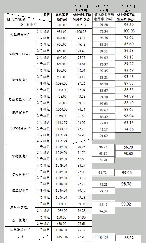中電聯(lián)最新發(fā)布的《2016年前三季度全國電力供需形勢分析預(yù)測報告》也指出,核電方面,與上年同期相比,除廣東外的其余省份設(shè)備利用小時降幅均超過250小時,其中,福建、遼寧分別降低645、780小時。
