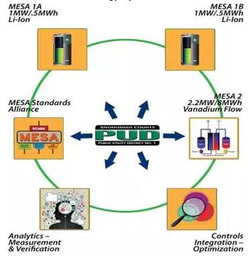 Snohomish County Public Utility District (PUD) 是華盛頓州第二大公用事業(yè)公司(publicly owned utility ),服務于33.7萬電力客戶。PUD已經獲得華盛頓州清潔能源基金730萬美元的支持,在當地開展儲能示范和技術驗證項目。此外PUD借助該儲能項目還將與Bonneville Power Administration 和華盛頓大學聯(lián)合開展儲能應用優(yōu)化和需求響應的示范驗證,該部分也將得到華盛頓清潔能源基金100萬美元的支持。PUD將與1Energy Systems合作搭建儲能系統(tǒng)平臺(Modular Energy Storage Architecture),并于2016年9月開發(fā)完成儲能優(yōu)化控制系統(tǒng)(Energy Storage Optimizer)。