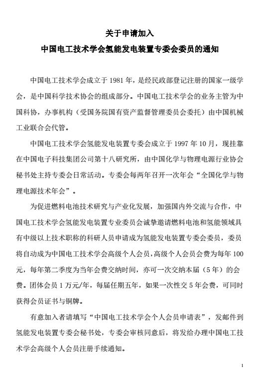 關(guān)于申請加入中國電工技術(shù)學(xué)會(huì)氫能發(fā)電裝置專委會(huì)委員的通知