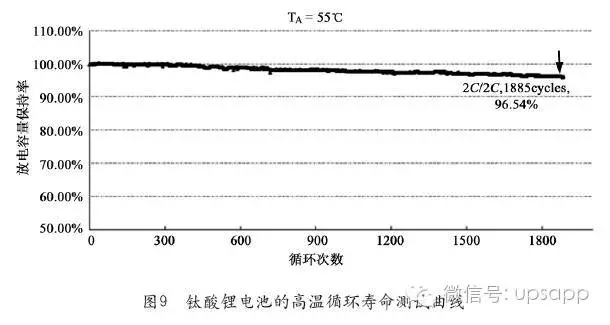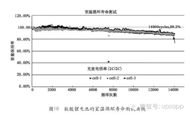 長壽命。鈦酸鋰單體電芯的循環(huán)壽命長達(dá)2.5萬次以上,圖9和圖10分別給出了鈦酸鋰電池高溫循環(huán)壽命測試曲線和室溫循環(huán)壽命測試曲線;