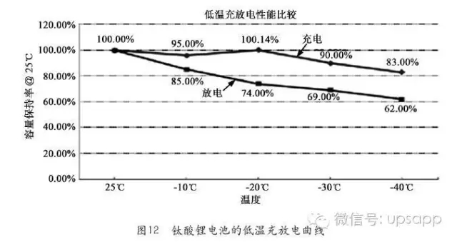耐高溫性能優(yōu)越,鈦酸鋰電池在-40~+60℃溫度下仍然能夠正常工作,圖12給出了鈦酸鋰電池的低溫充放電曲線;