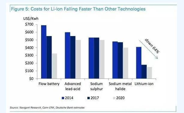 德意志銀行的報(bào)告專門提到了特朗普就任美國總統(tǒng)的影響。報(bào)告認(rèn)為,特朗普上臺(tái)后美國對(duì)可再生能源的補(bǔ)貼政策和研發(fā)經(jīng)費(fèi)將會(huì)縮水,但是對(duì)于儲(chǔ)能市場(chǎng)本身卻可能是歪打正著的推動(dòng),因?yàn)闇p少了補(bǔ)貼的間歇性可再生能源的繼續(xù)發(fā)展將更依賴于儲(chǔ)能技術(shù)。