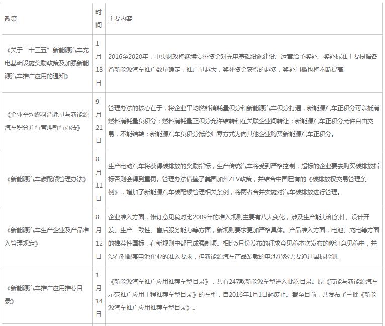 2016年中國新能源汽車十大重磅政策