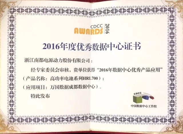 會(huì)上,南都電源HRL系列高功率電池再度榮獲2016年度優(yōu)秀數(shù)據(jù)中心產(chǎn)品應(yīng)用獎(jiǎng),成為電池行業(yè)唯一一家連續(xù)四年榮獲“中國優(yōu)秀數(shù)據(jù)中心產(chǎn)品應(yīng)用獎(jiǎng)”的企業(yè),再次證實(shí)了南都電源在數(shù)據(jù)中心領(lǐng)域的強(qiáng)大實(shí)力,極大地提高了公司的行業(yè)地位和品牌形象。