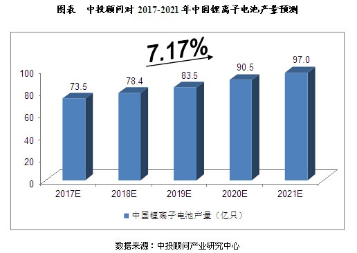 2017-2021年中國(guó)鋰離子電池產(chǎn)量預(yù)測(cè)