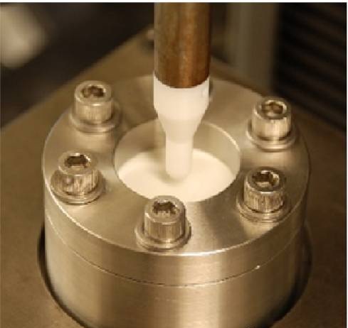 為了測試隔膜的厚度壓縮性能,Xiaowei Zhang將隔膜卷繞成具有40層的圓柱形結(jié)構(gòu),直徑為16mm,首先給卷芯采用0.5MPa進(jìn)行加壓,確保隔膜層間沒有間隙,然后逐漸增加壓力直到100MPa。經(jīng)過上述加壓實驗后,干法工藝制備的PE和三層復(fù)合隔膜在軸向上變形成橢圓,但是濕法陶瓷涂層隔膜和無紡布工藝隔膜則仍然在測試后保持了圓形結(jié)構(gòu),這主要是由于干法隔膜各向異性較大,而濕法隔膜和無紡布隔膜各個方向上抗拉強(qiáng)度近似造成的。對隔膜卷芯的應(yīng)變測試也發(fā)現(xiàn),在壓力加載的過程中干法工藝制備的PE和三層復(fù)合隔膜在20MPa左右存在一個明顯的屈服點(diǎn),而且應(yīng)變也大于濕法工藝隔膜和無紡布工藝隔膜,后者在測試中未出現(xiàn)明顯的屈服點(diǎn)。