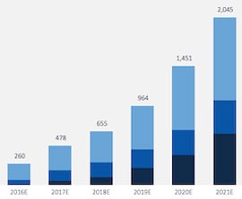 GTM Research預(yù)計(jì)2016年美國(guó)年度儲(chǔ)能市場(chǎng)將從2015年的226MW增長(zhǎng)到260MW,到2021年將超過(guò)2GW,是2016年市場(chǎng)規(guī)模的8倍。