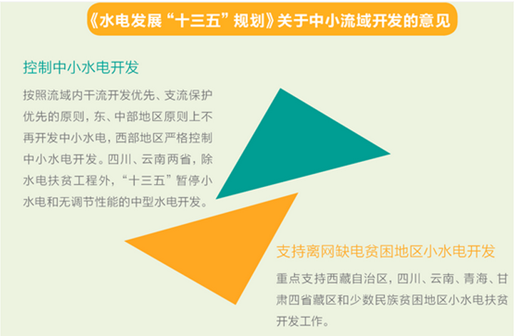 11月7日,《電力發(fā)展“十三五”規(guī)劃》如期發(fā)布。規(guī)劃指出,應(yīng)在堅(jiān)持生態(tài)優(yōu)先和移民妥善安置前提下,積極開(kāi)發(fā)水電。以重要流域龍頭水電站建設(shè)為重點(diǎn),科學(xué)開(kāi)發(fā)西南水電資源。堅(jiān)持干流開(kāi)發(fā)優(yōu)先、支流保護(hù)優(yōu)先的原則,積極有序推進(jìn)大型水電基地建設(shè),嚴(yán)格控制中小流域、中小水電開(kāi)發(fā)。爭(zhēng)取到2020年,常規(guī)水電裝機(jī)達(dá)到3.4億千瓦。