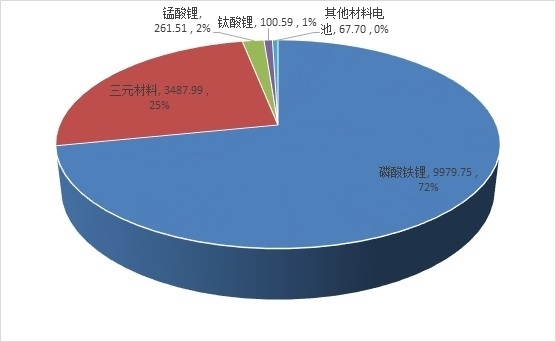 分電池種類,磷酸鐵鋰電池依舊是市場(chǎng)主力,占比高達(dá)72%,搭載量高達(dá)10Gwh,而三元材料電池受制此前政策禁用純電動(dòng)客車的影響,今年前10月搭載量?jī)H為3.49Gwh,占比25%。其次,包括錳酸鋰、鈦酸鋰、鎳氫電池、超級(jí)電容等其他材料電池也均有小量搭載,占比僅3%。