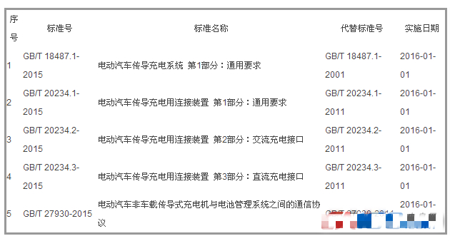 2015年12月28日,質(zhì)檢總局、國家標(biāo)準(zhǔn)委聯(lián)合國家能源局、工信部、科技部等部門,在京發(fā)布新修訂電動汽車充電接口及通信協(xié)議5項(xiàng)國家標(biāo)準(zhǔn),目前我國電動汽車直流接口等國家標(biāo)準(zhǔn)與美日歐并列為世界四大直流充電接口標(biāo)準(zhǔn)。