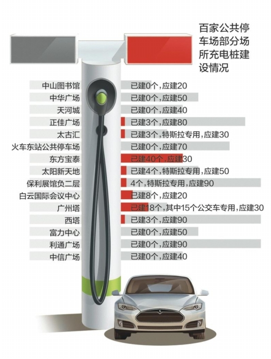 廣州市工信委今年8月組織實施“雙百行動”,百家黨政機關(guān)、公共機構(gòu)及重點企業(yè),百個公共停車場加快建設(shè)充電設(shè)施,列出到2016年底和2018年底的建設(shè)目標。中信、富力中心等重要的CBD寫字樓充電樁為零。南都記者隨機走訪百個公共停車場中的15個,除了東方寶泰外,全部達不到建設(shè)目標,東站、中山圖書館等公共場所均未建設(shè)充電樁。
