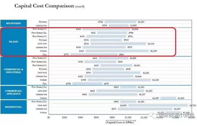 如果單看應用于島嶼電網的各類儲能技術初投資,其成本(美元/千瓦時)為——