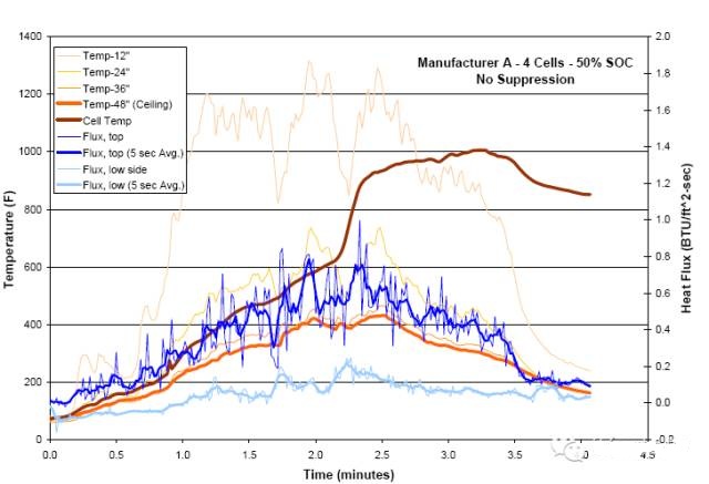 2006年,美國聯(lián)邦航空局50 18650上的鋰離子電池進行哈龍1301的抑制類似的測試,100%SOC. 聯(lián)邦航空局觀察到類似的行為來測試通過指數(shù)報告的結(jié)果。