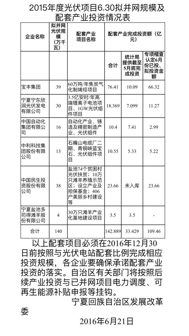 據(jù)悉,此次寧夏的電站投資企業(yè)與地方政府的矛盾集中在產(chǎn)業(yè)配套的原則上。在寧發(fā)改2017年2號文中,附件2-2為建設(shè)配套產(chǎn)業(yè)項目承諾函,而事實上,參與增補指標(biāo)競爭的項目在2014、2015年拿到備案的時候,當(dāng)?shù)卣]有要求產(chǎn)業(yè)配套。寧夏自治區(qū)是在2016年出臺了光伏指標(biāo)獲得需要產(chǎn)業(yè)投資配套的政策,而這些參與競配指標(biāo)的項目根本就沒有時間和機會去完成地方政府對產(chǎn)業(yè)配套的要求。據(jù)知情人透露,是寧夏自治區(qū)政府要求在增補指標(biāo)分配辦法中加入產(chǎn)業(yè)配套的原則。