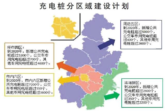 按照規(guī)劃,充電基礎(chǔ)設施包括公交車充換電站、出租車充換電站、物流環(huán)衛(wèi)郵政等專用充電站、城市公共充電站、公共分散式充電樁、用戶自用充電樁、城際快充站等七大類設施。根據(jù)規(guī)劃總體目標,按照適度超前原則,到2020年,在中心市區(qū)、環(huán)市四區(qū)和濱海新區(qū)的建成區(qū),建設全面覆蓋、密度較高的充電服務網(wǎng)絡,基本建成平均服務半徑為0.9公里的公用充電基礎(chǔ)設施網(wǎng)絡體系;在環(huán)市四區(qū)和濱海新區(qū)的其他區(qū)域、其他五區(qū)建成區(qū)建設布局均衡、適當集中的充電服務網(wǎng)絡,基本建成平均服務半徑為3公里的公用充電基礎(chǔ)設施網(wǎng)絡體系;在靜海、寶坻、武清、寧河、薊州區(qū)五區(qū)的其他區(qū)域形成分級明確、適當預留的充電服務網(wǎng)絡,基本建成平均服務半徑為5公里的公用充電基礎(chǔ)設施網(wǎng)絡體系。