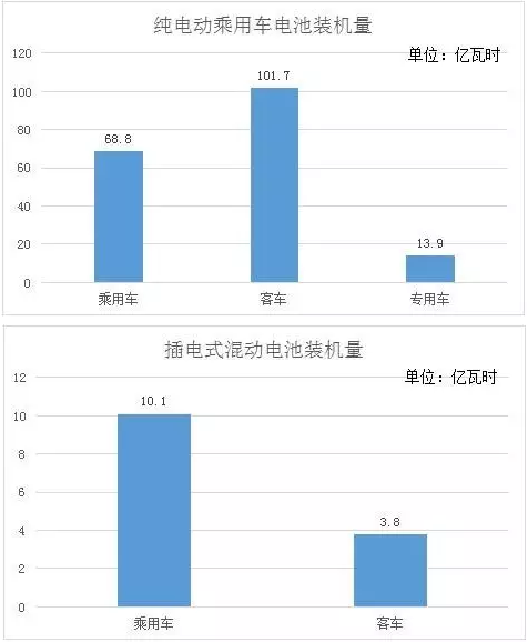 其中純電動乘用車68.8億瓦時,純電動客車101.7億瓦時,純電動專用車13.9億瓦時,插電式乘用車10.1億瓦時,插電式客車3.8億瓦時。